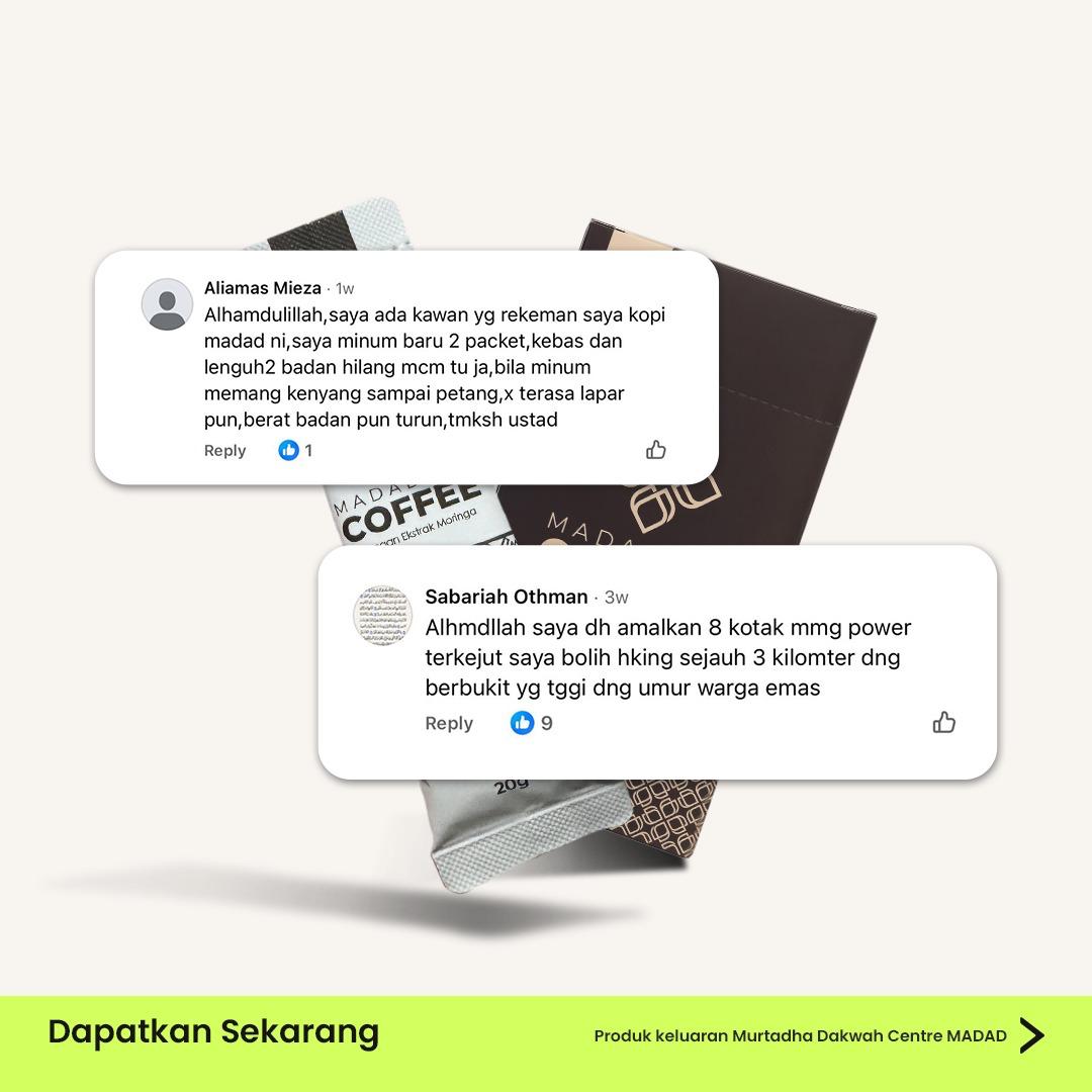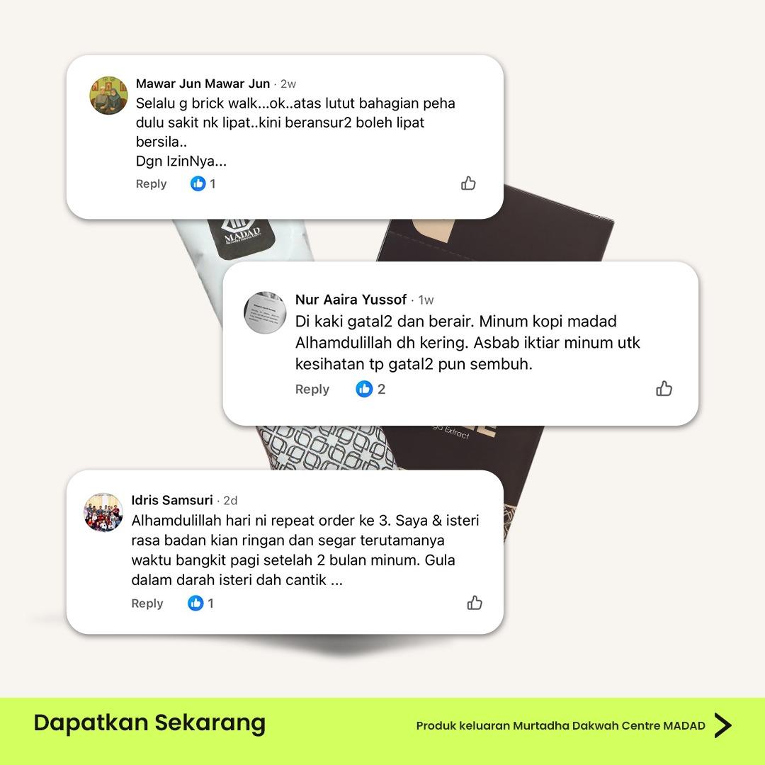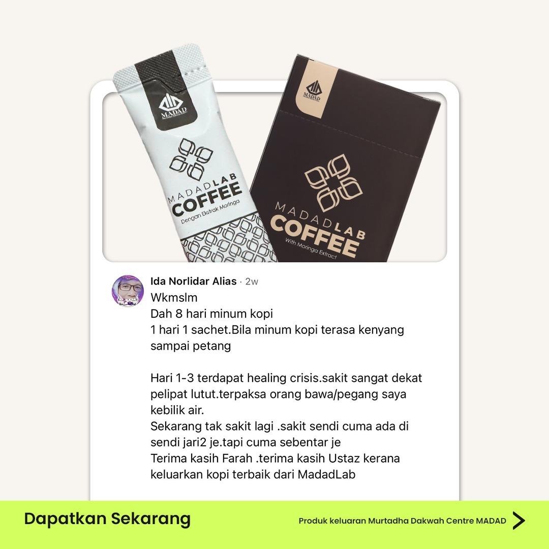 “Kalau saya dah beli MADADLAB COFFEE, dah amalkan dengan konsisten tapi saya masih tak puas hati sebab tak ada sebarang perubahan positif?”